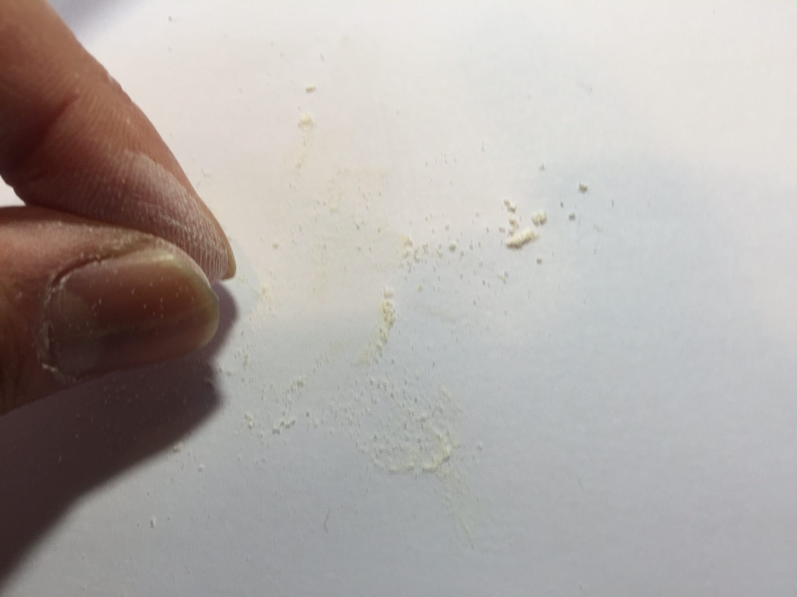 大きい粒子ならつぶしてみてはどうだろうと指で強くスリスリして細かくすりつぶしてみました。