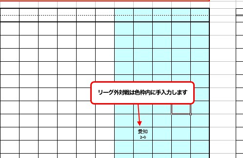 そこで、いちいち名前を記入する手間が省け、対戦から漏れている選手がないようにし、結果も星取表からすぐにわかるようなエクセルファイル、題して「もれない君」を作ってみました。