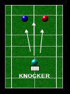 前衛で相手のプッシュを止めるのはエラーが出るかもしれないので勇気がいります。この練習はそれを極端にしたものです。前衛の人はネットの手前に立ちま す。そしてノッカーはボディの上辺りをねらってドライブを打ちます。かなり恐怖を感じますが、ラケットを上げていると止めれると思います。慣れてくると、 ネットの向こう側に立って同じようにノックします。ずいぶん楽に感じると思います。ノッカーの人は集中してコントロールしてください。