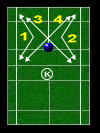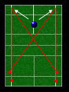 全面から1点に返す(青:白点に返す、赤:全面に打ち分ける)各点、時間または本数を決めて4点する。