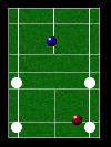 青はノッカーから打ち出された球をスマッシュ(+カット)で攻撃。赤の方は決められないようにリターンします。