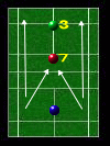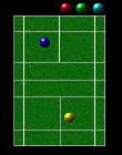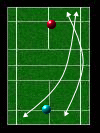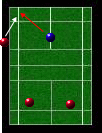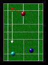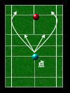 赤は白の矢印の方に動き、スマッシュ、プッシュ、レシーブの順に打ちます。