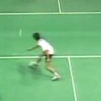 フットワーク フットワーク例/バックハンド側前 2012年9月30日 2020年1月14日 Keiichi Arita 上体を前に沈めることなく、左手をうまく後ろに回す動作で、上半身は軸回転して右足を前に出しています。インパクト後は左足を右足側に引きつけ、重心を維持しています。 相手がインパクト、少し沈み込み足裏全体で床を捉える 左腕をすばやく後ろに引き上半身は左回転を始める 左足の股関節を緩め頭の上下動を少なくしシャトルをしっかりと見る インパクト後は左足を引き、バランスを維持 足で押し込むイメージ、線でシャトルを運ぶ スポンサーリンク Facebook post