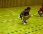 | 膝を内側に交互に入れます。 | 膝を外側に交互に出します。 | 4方向にしゃがみ跳びをします。 |